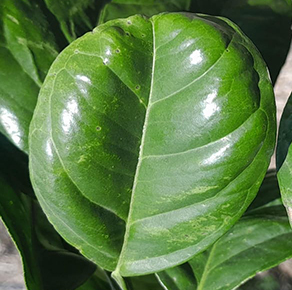 Os sintomas foliares da deficiência de boro no citrus não são muito característicos e uma suspeita de deficiência na base da folha deve ser confirmada por sintomas no fruto. Os primeiros sinais aparecem nas folhas mais jovens como manchas aquosas que se tornam transparentes. As nervuras tendem a ser espessas, rachadas e lembrarem cortiça. As folhas jovens murcham e enrolam, e têm uma coloração verde amarronzada esmaecida sem nenhum brilho. O perecimento das extremidades das folhas é comum. Um exsudato gomoso poderá surgir nos galhos e nos pedicelos do fruto.
